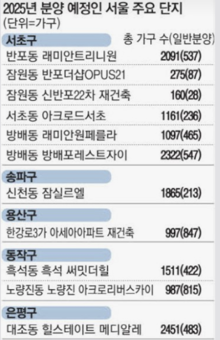 25년 분양 예정인 서울 주요 단지 정보입니다.
