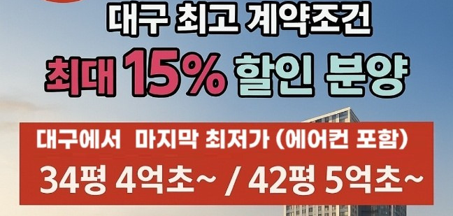 - 합리적인 분양가: 15% 할인 혜택으로 4억 원대에 중대형 평형 아파트 구매 가능